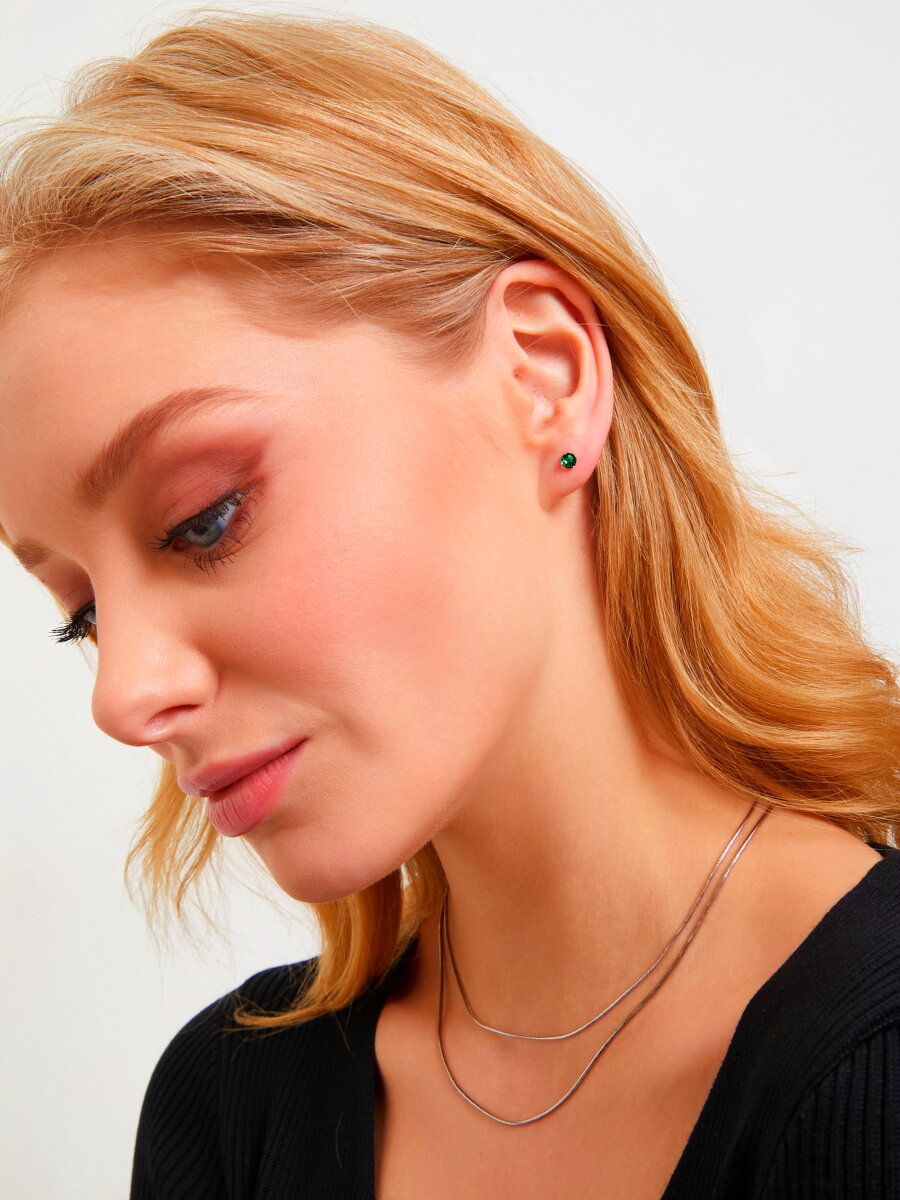 Серьги пусеты ПЕРСОНА, серебро, 925 проба, родирование, кристаллы Swarovski, размер 4 мм, длина 1.3 см, , зеленый