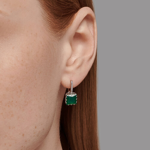 Купить Серьги из серебра с зелеными агатами и фианитами яхонт Ювелирный Арт. 2718685