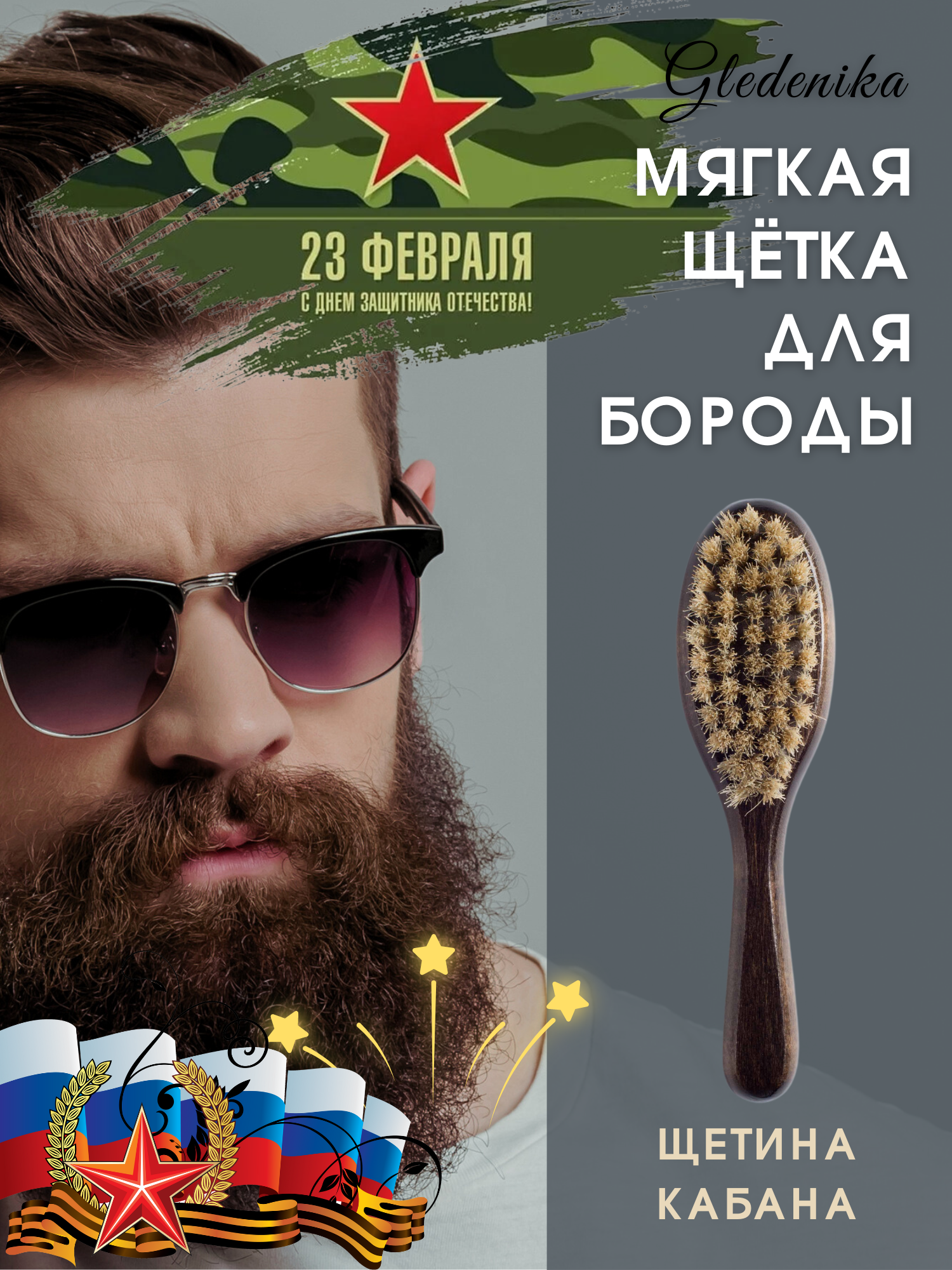 Щетка для бороды и усов Gledenika из щетины кабана средней жесткости, массажная, с ручкой / Оригинальные подарки мужчине интересное: