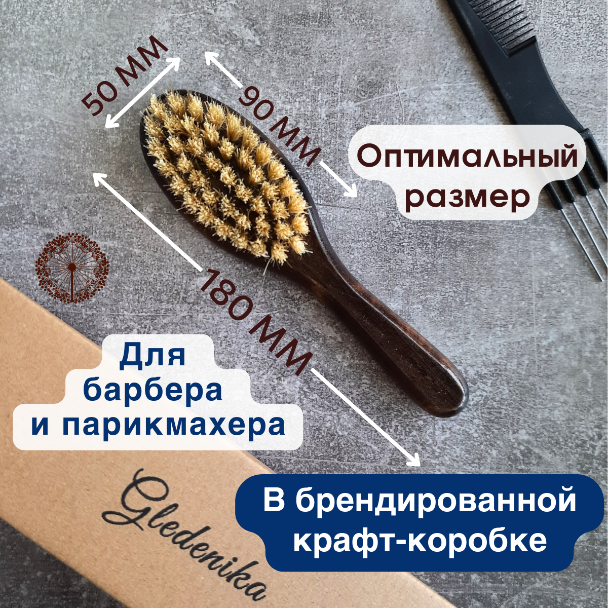 Купить Щетка для бороды и усов Gledenika из щетины кабана средней жесткости, массажная, с ручкой / Оригинальные подарки мужчине