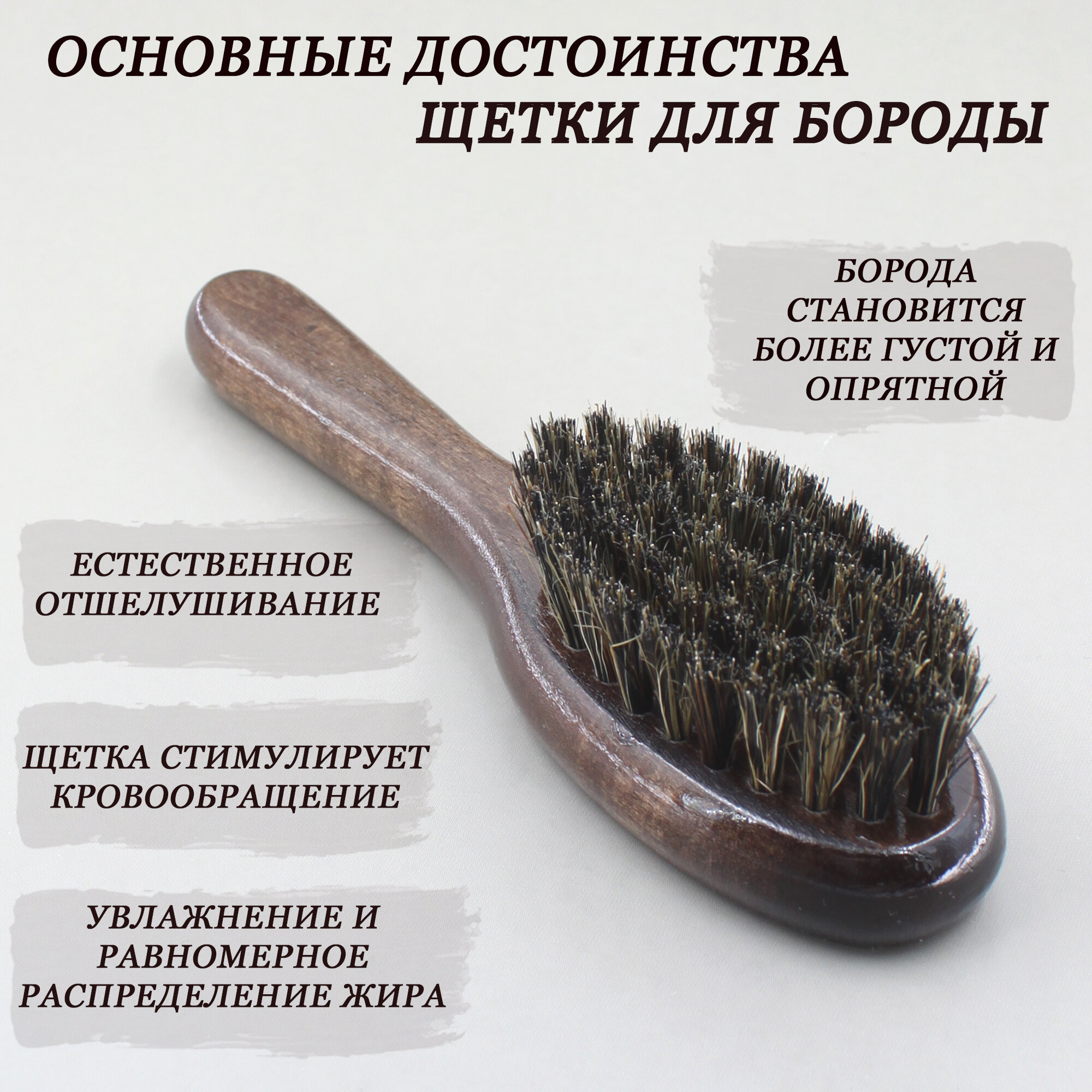 Щетка для бороды, усов и волос, деревянная овальная колодка, натуральная щетина, для нанесения бальзама и масла