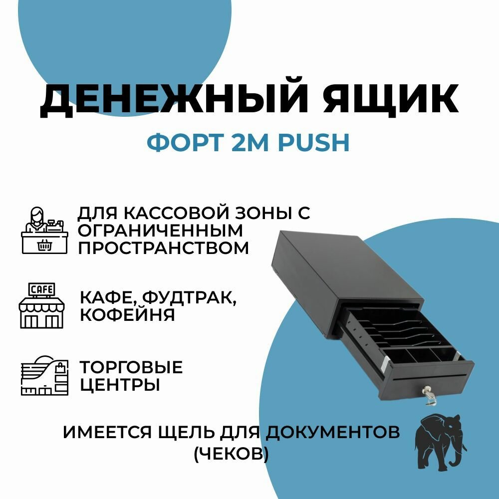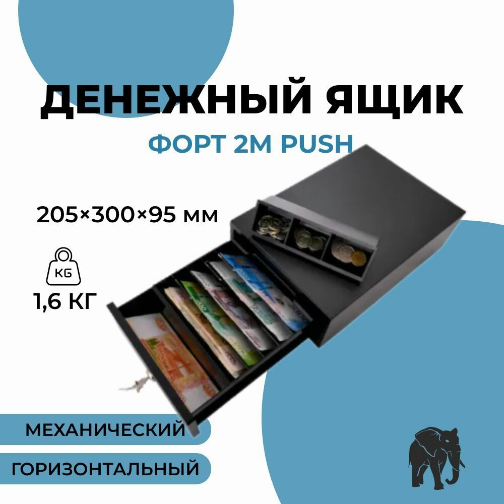 Денежный ящик для кассы Форт 2M PUSH, механический, с ключом,горизонтальный / ящик для денег интересное: