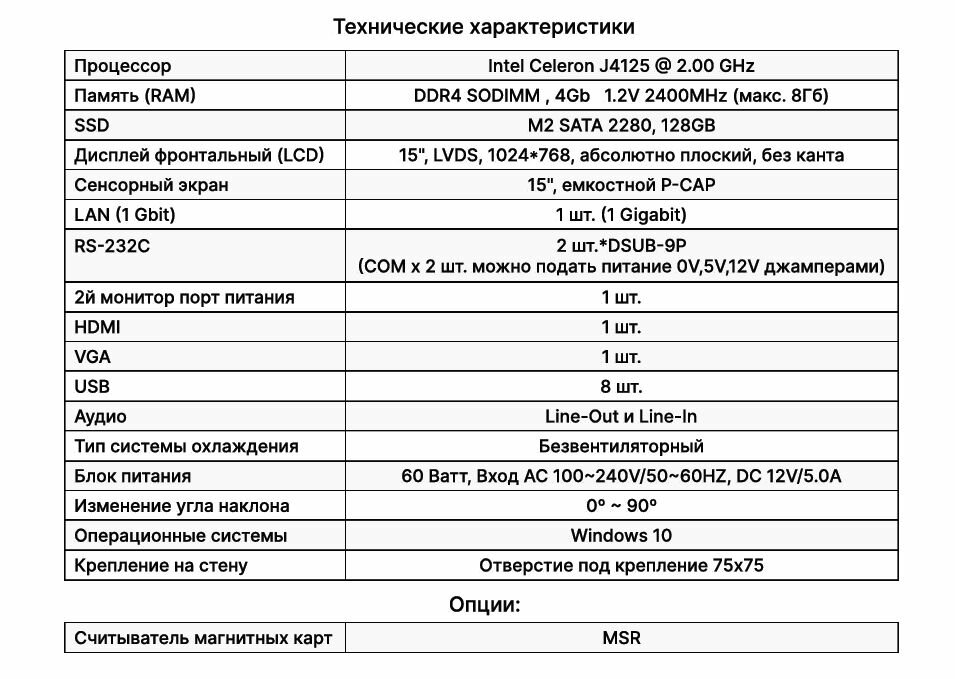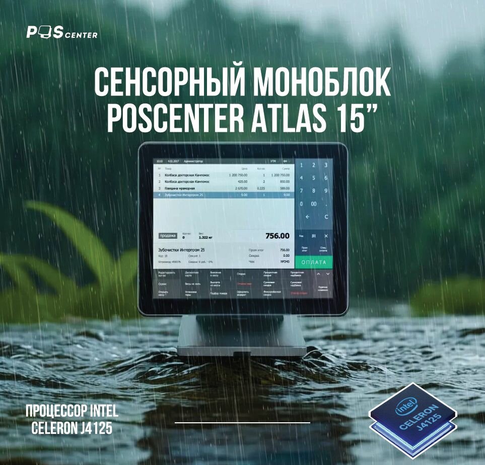 Сенсорный моноблок POSCenter Atlas (15", PCAP, J4125, RAM 4Gb, SSDM2 128Gb, MSR) без ОС интересное:
