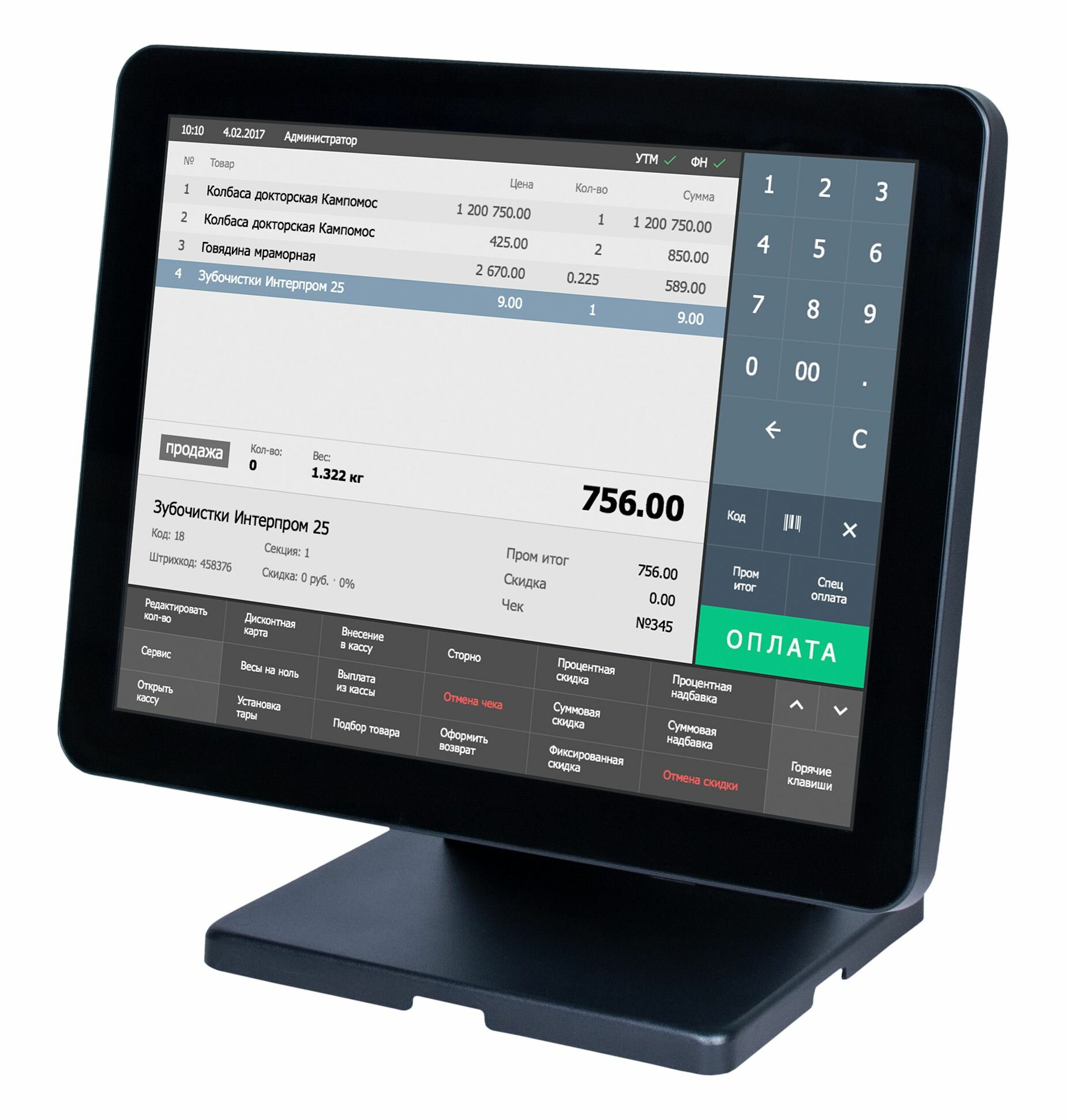 | Тип устройства | POS-компьютер |