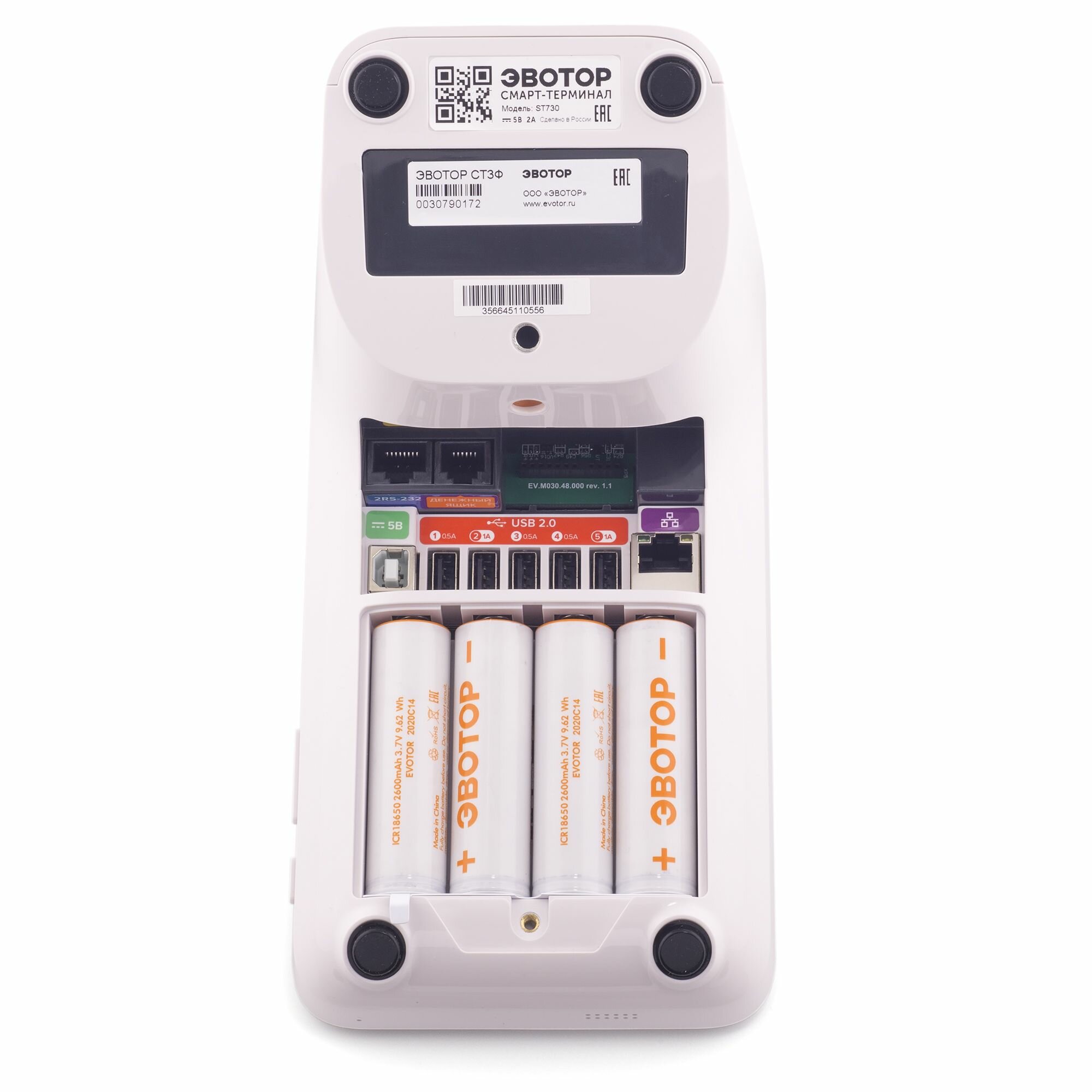 | Комплектация | Смарт терминал (касса онлайн) Эвотор 7.3;блок питания;аккумулятор 2 600 мА·ч -4 шт;Чековая лента 1 шт;руководство по эксплуатации. |
