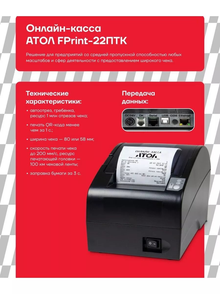 Касса АТОЛ FPrint-22ПТК + ФН 1.2 на 15 месяцев интересное: