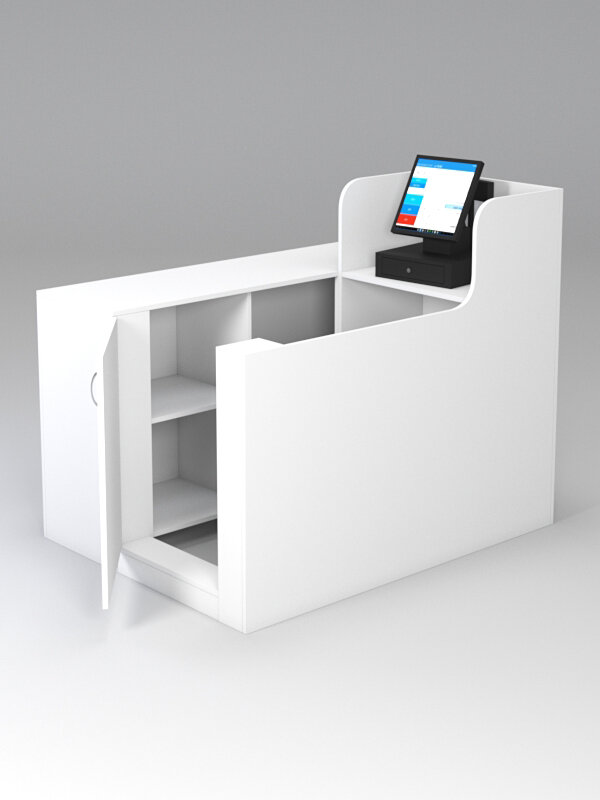 Кассовый стол "КС" №8-1А1С левый, Грейвуд и Белый 180 x 50 x 100 см