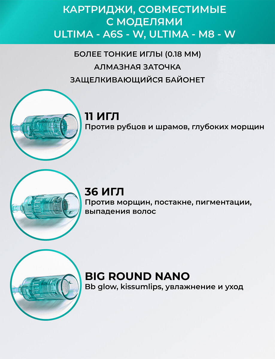 Dr.pen Картридж для дермапен мезопен / Big Round Nano нано иглы / насадка для аппарата ULTIMA-A6s-W, 5 шт. интересное: