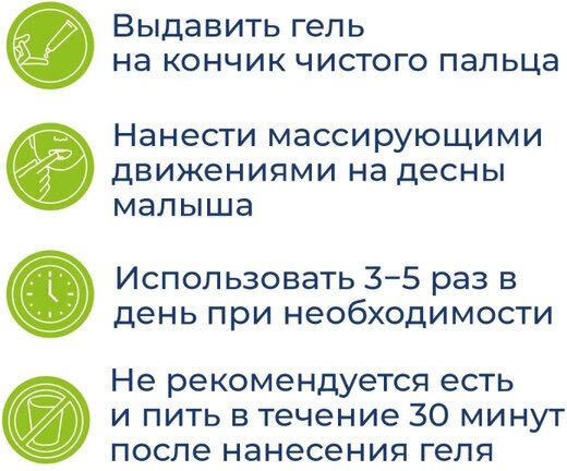 | Отзыв: | Гель свои задачи выполняет. После нанесения ребёнок успокаивается. |