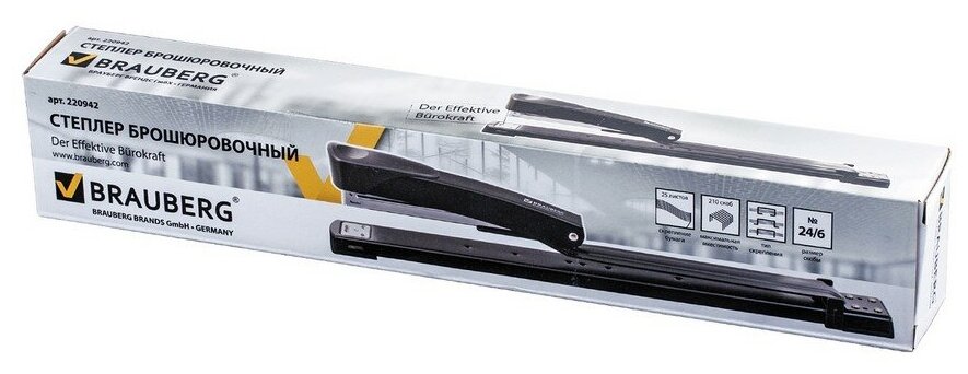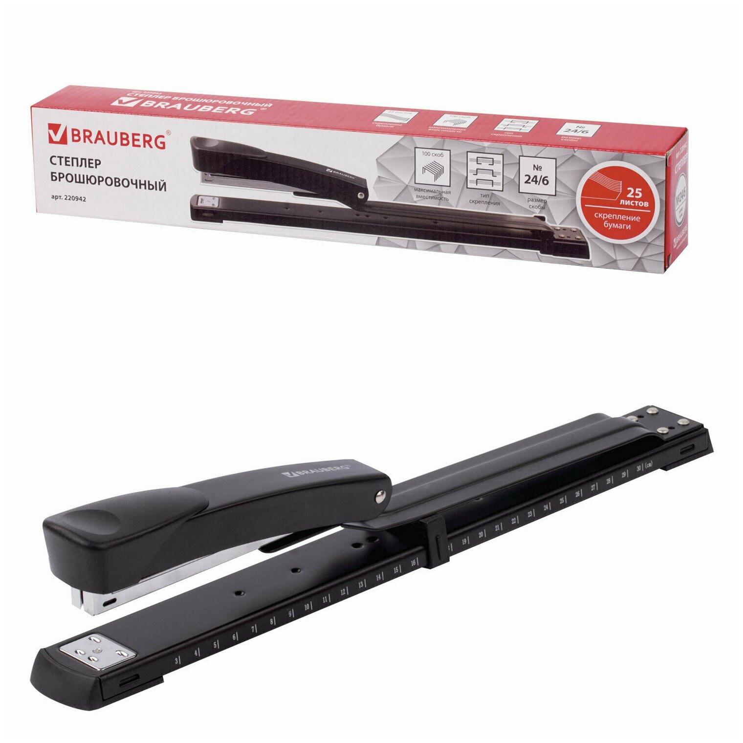 Степлер BRAUBERG, брошюровочный, №24/6, черный