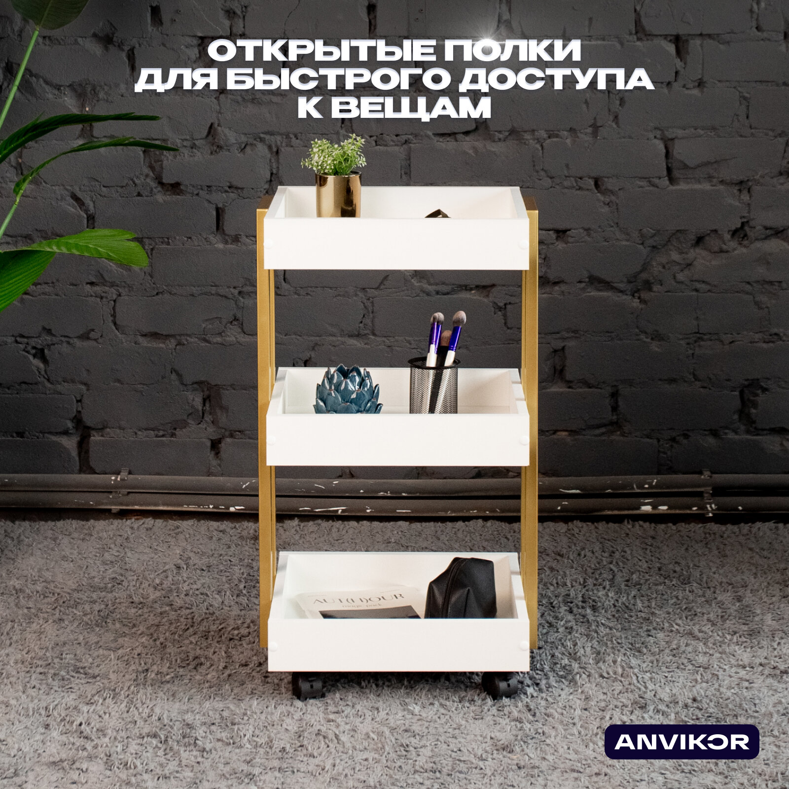 СохранитьТележка косметологическая на колесиках Лофт золотая интересное: