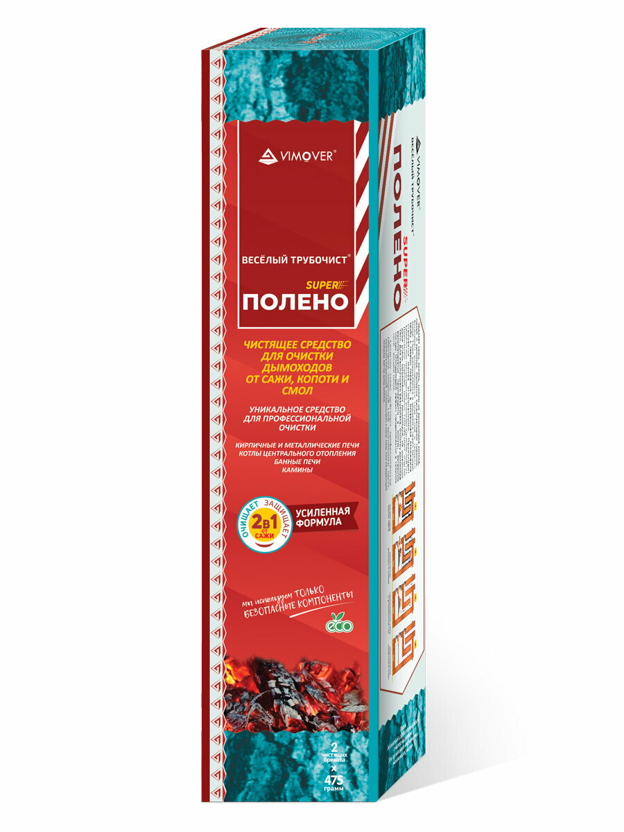 Полено мини SUPER 950гр. для прочистки дымоходов от сажи, копоти и смол Веселый трубочист