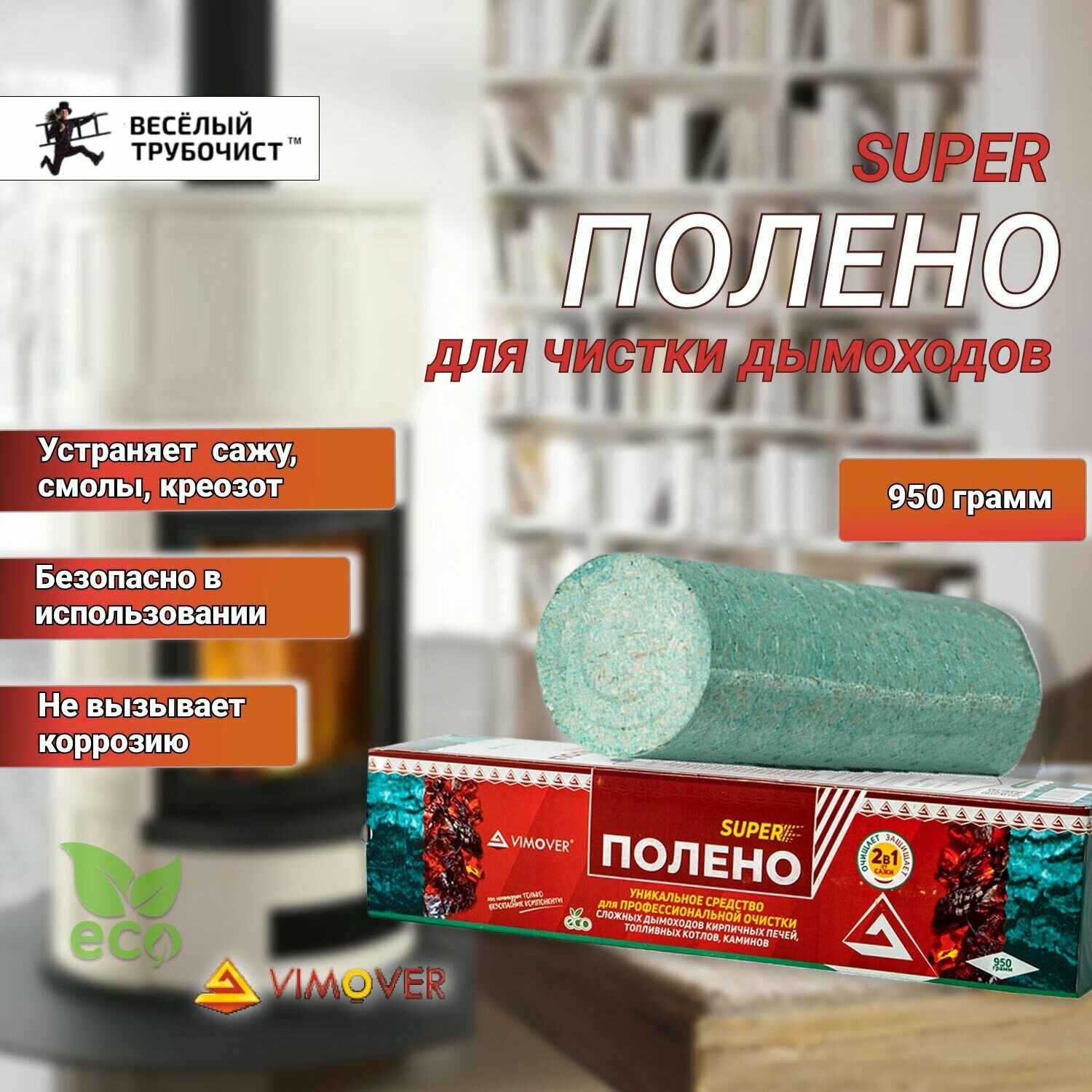 Купить Полено Супер Веселый трубочист для очистки дымохода, печей и каминов, 950 гр, 1 шт