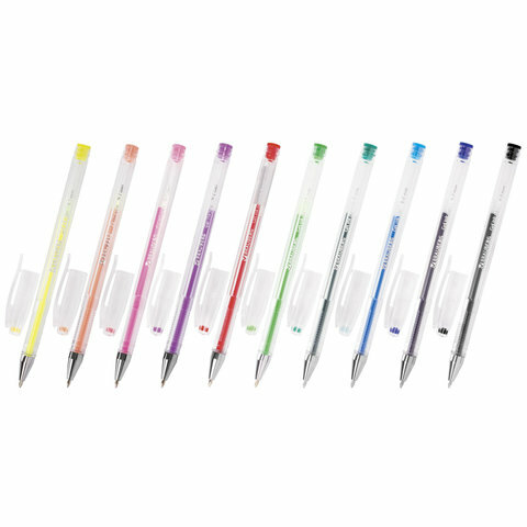 Ручки гелевые BRAUBERG "Jet", набор 10 цветов, узел 0,7 мм, линия письма 0,5 мм, 141038