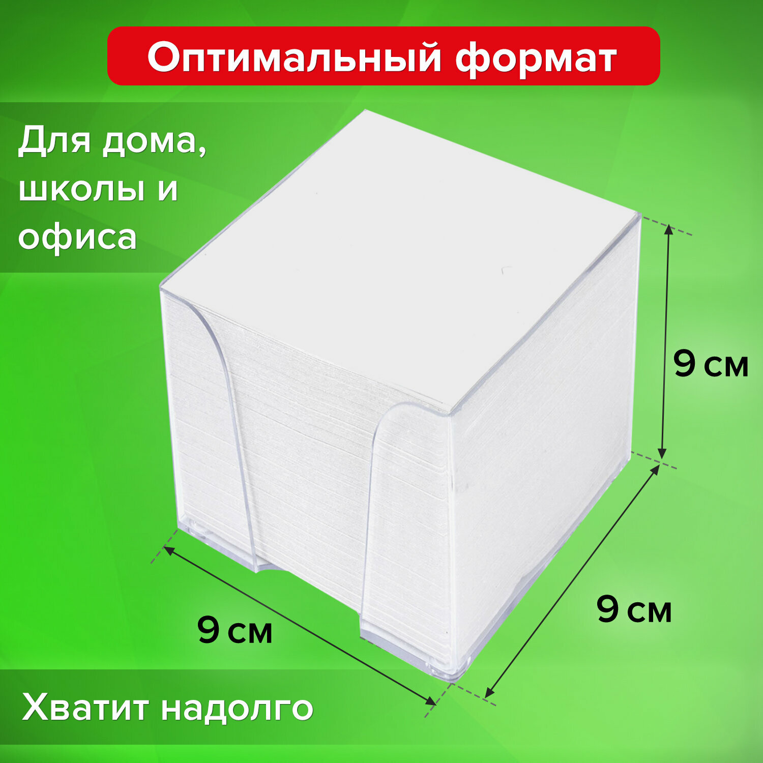 STAFF Блок для записей в прозрачной подставке, 9х9х9 см (129201) белый 65 г/м²