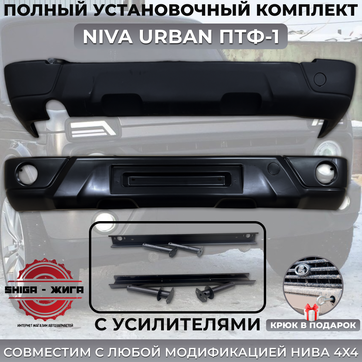 Комплект бамперов Нива Урбан "ПТФ 1" передний и задний с усилителями. Для ВАЗ Нива 2121-2131, 4х4, Урбан. Под окрас. интересное: