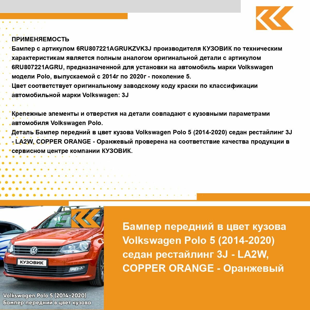 СохранитьБампер передний в цвет кузова Volkswagen Polo Фольксваген Поло (2014-2020) 3J - LA2W, Оранжевый интересное: