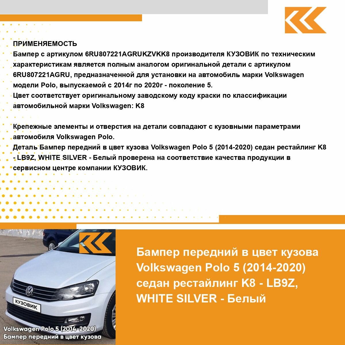 Ниже Вы можете прочитать отзывы на Бампер передний в цвет Volkswagen Polo Фольксваген Поло (2014-2020) K8 - LB9Z, WHITE SILVER - Белый, ознакомится с подробными характеристиками, посмотреть интересные обзоры и фотографии на Бампер передний в цвет Volkswagen Polo Фольксваген Поло (2014-2020) K8 - LB9Z, WHITE SILVER - Белый.