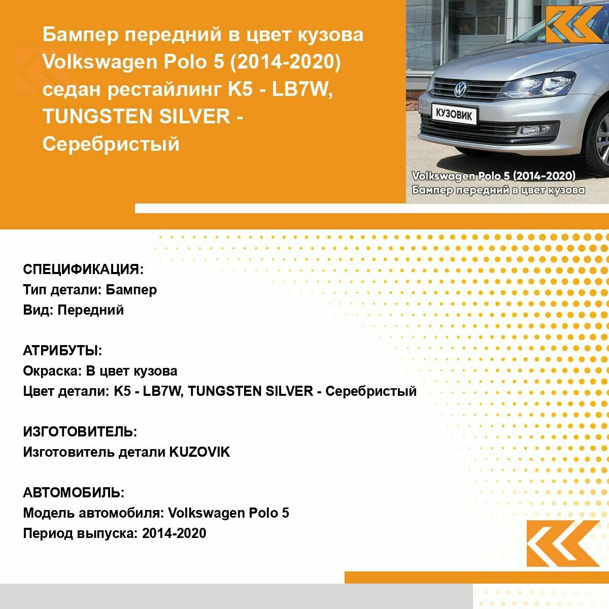 СохранитьБампер передний в цвет кузова Volkswagen Polo Фольксваген Поло (2014-2020) K5 - LB7W, Серебристый интересное: