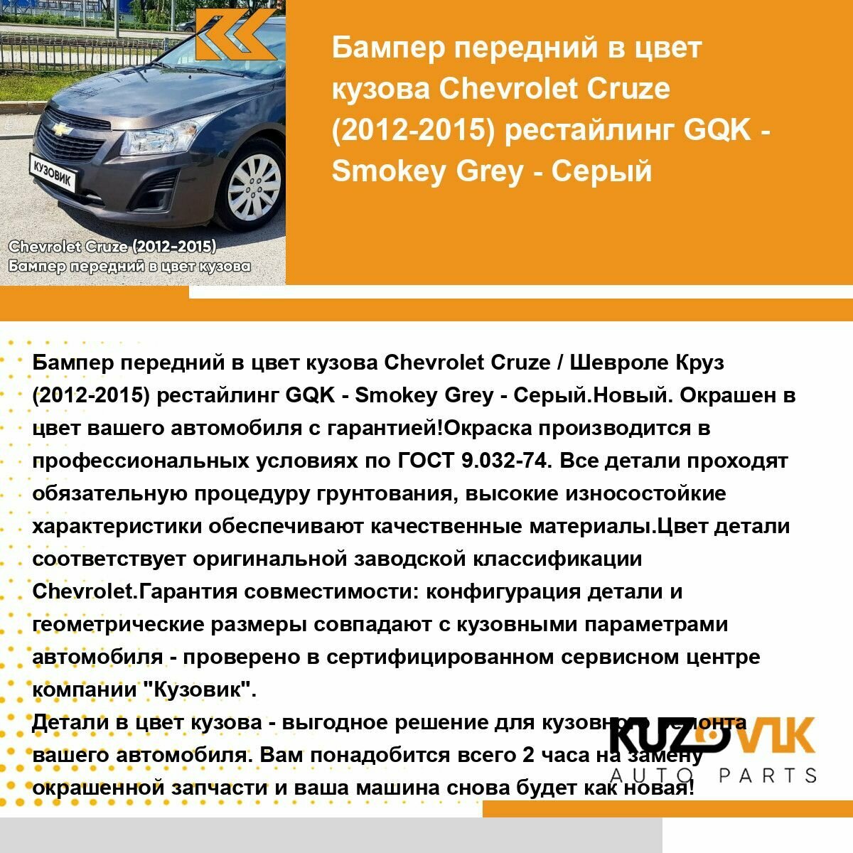 СохранитьБампер передний в цвет кузова для Шевроле Круз Chevrolet Cruze (2013-) GQK - Smokey Grey - Серый интересное: