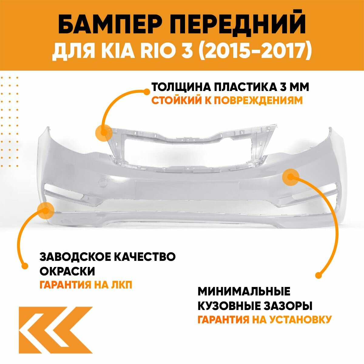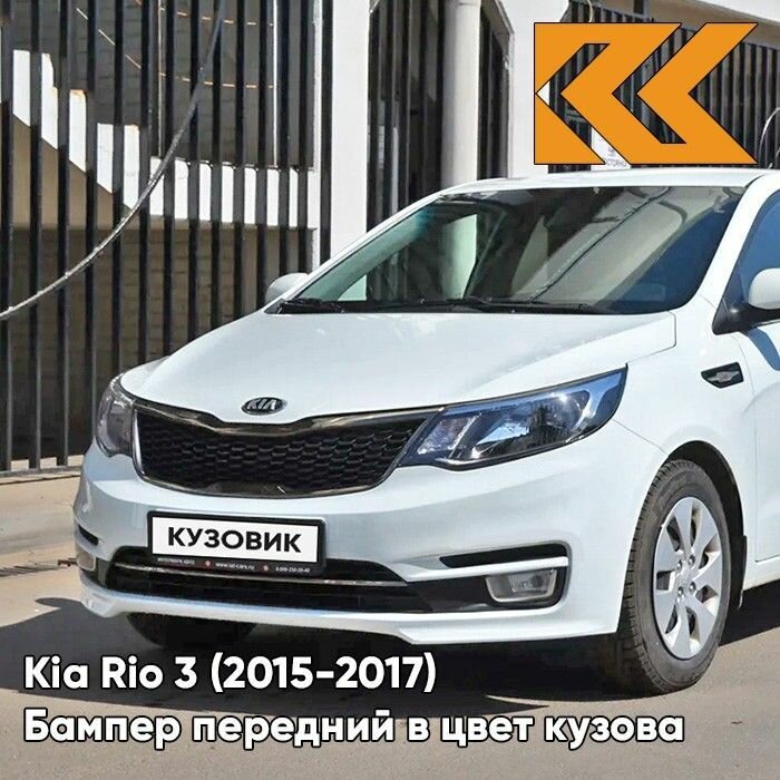 Бампер передний в цвет Kia Rio 3 (2015-2017) рестайлинг PGU - WHITE CRYSTAL - Белый