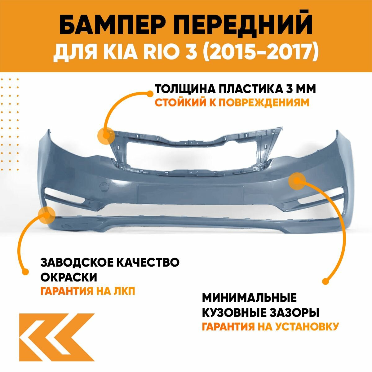 Купить Бампер передний в цвет кузова для Киа Рио 3 Kia Rio 3 (2015-2017) рестайлинг BR7 - RUSSIAN BLUE - Голубой