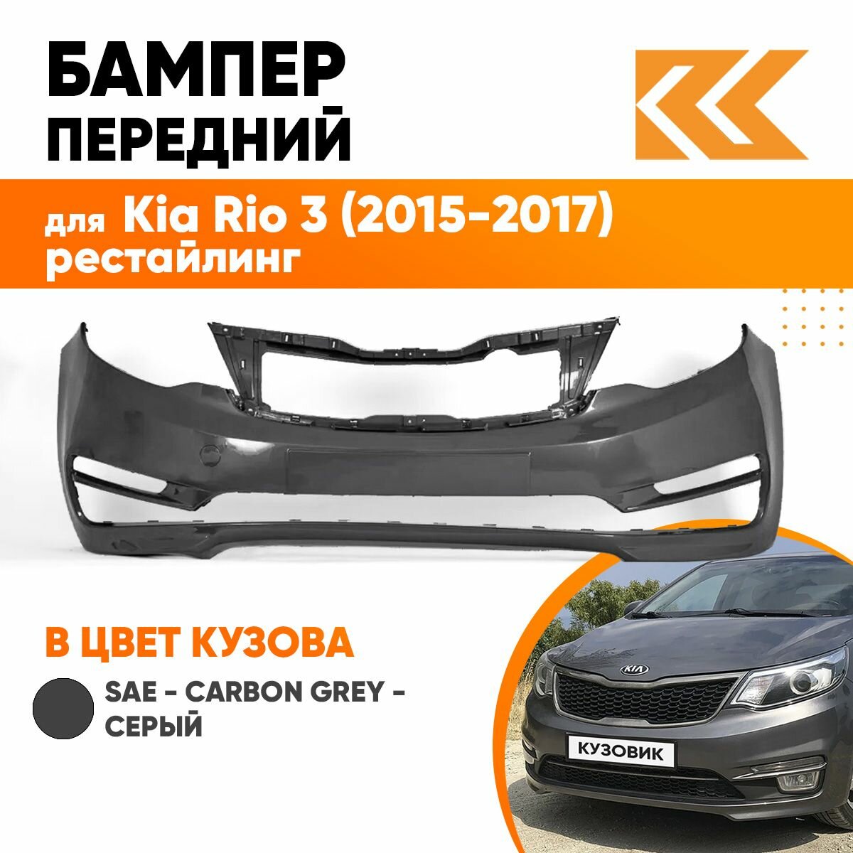 СохранитьБампер передний в цвет кузова для Киа Рио 3 Kia Rio 3 (2015-2017) рестайлинг SAE - CARBON GREY - Серый интересное: