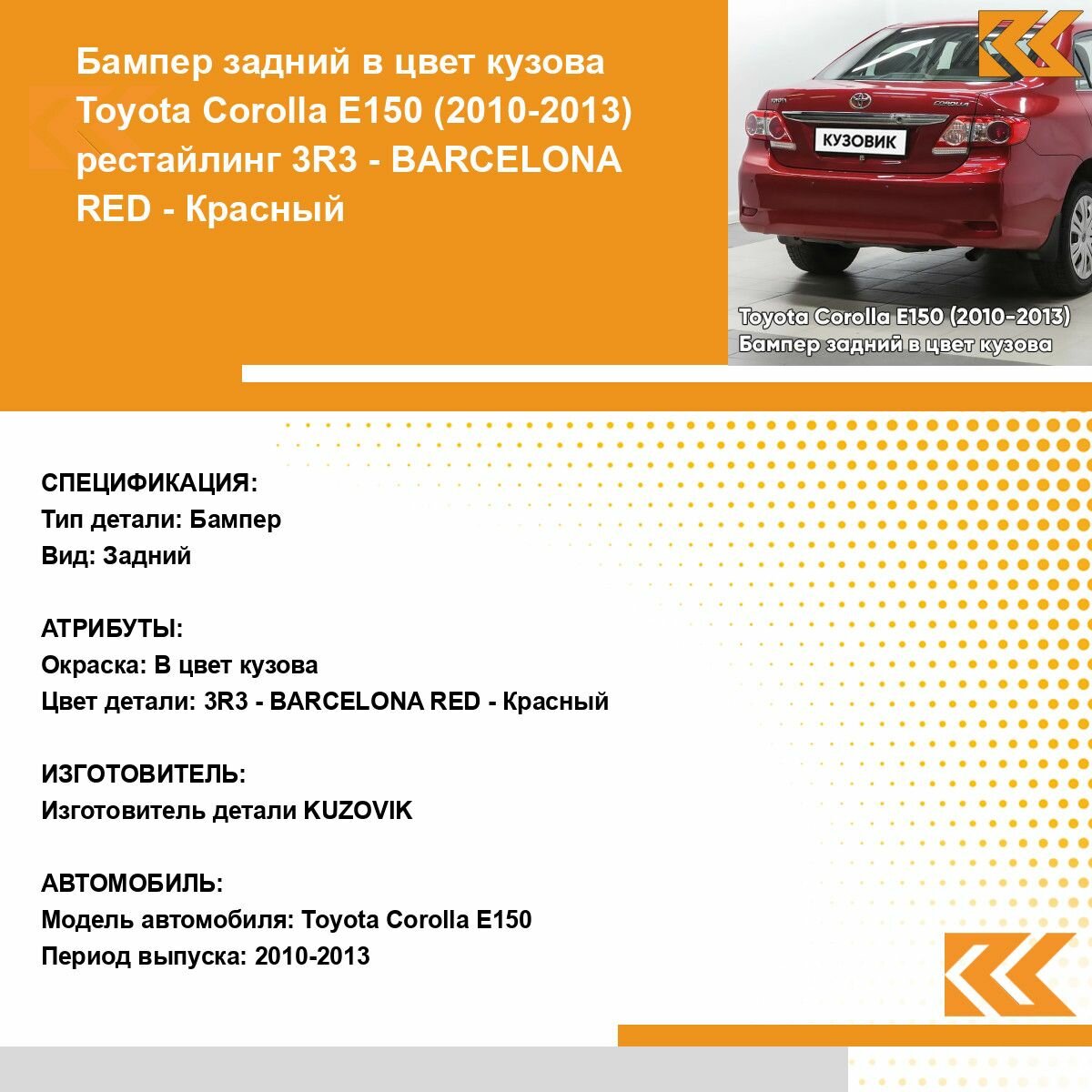 Купить Бампер задний в цвет кузова Тойота Королла Е150 Toyota Corolla E150 (2010-2013) рестайлинг 3R3 - BARCELONA RED - Красный