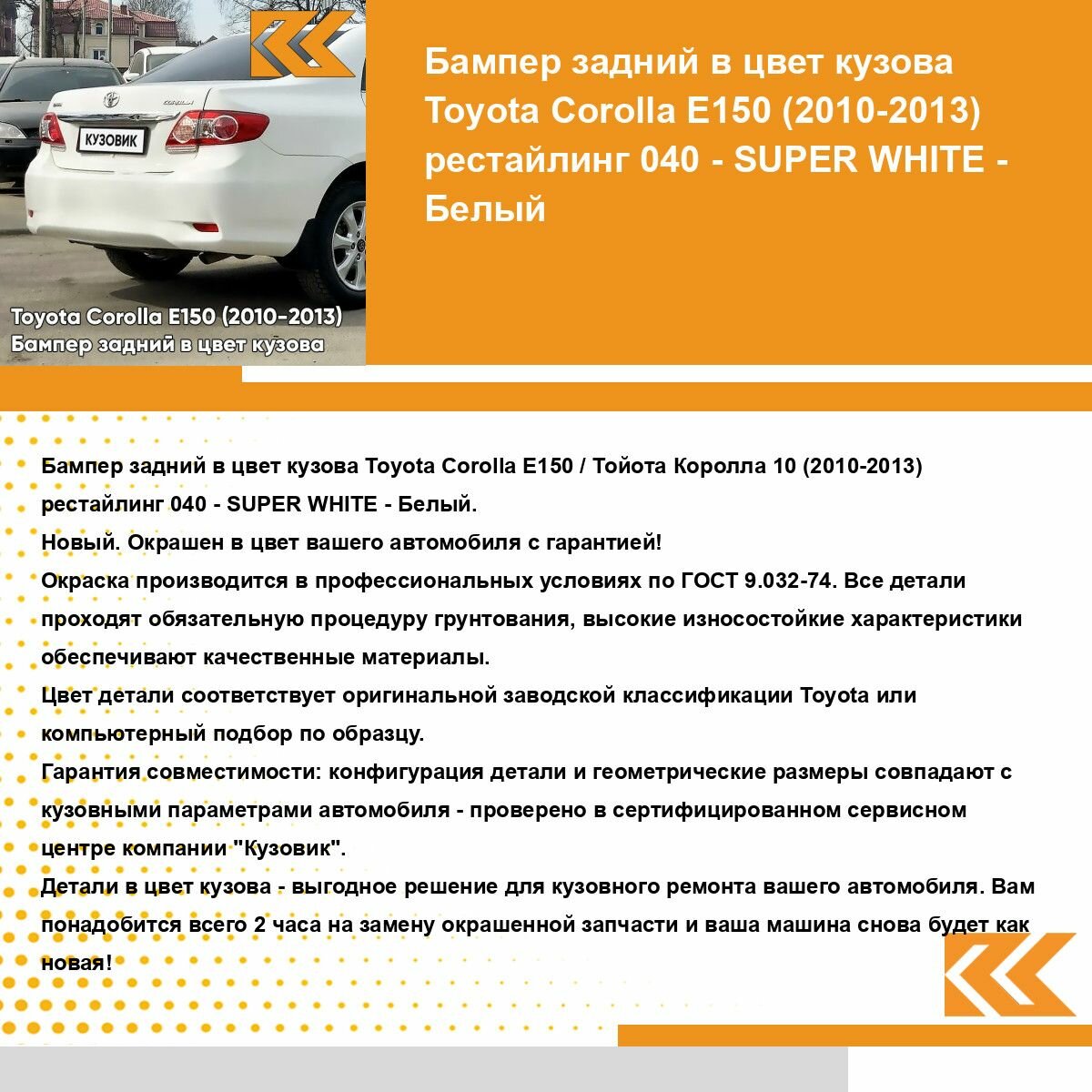 СохранитьБампер задний в цвет кузова Тойота Королла Е150 Toyota Corolla E150 (2010-2013) рестайлинг 040 - SUPER WHITE - Белый интересное: