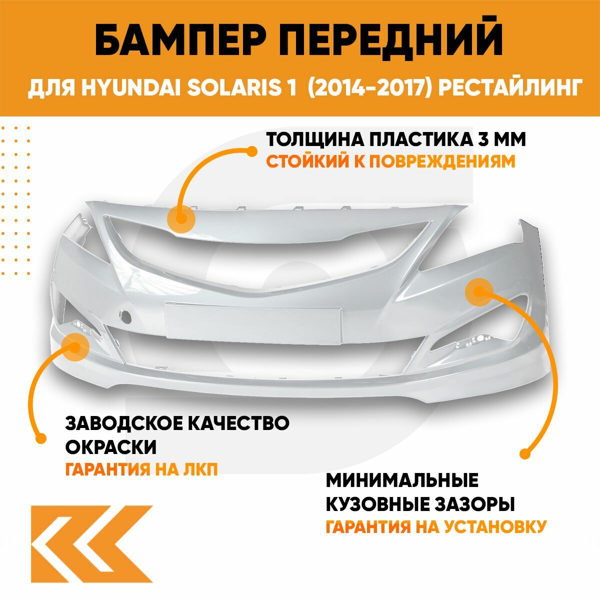 СохранитьБампер передний в цвет кузова для Хендай Солярис 1 Hyundai Solaris 1 (2014-2017) рестайлинг PGU - White Crystal-Белый интересное: