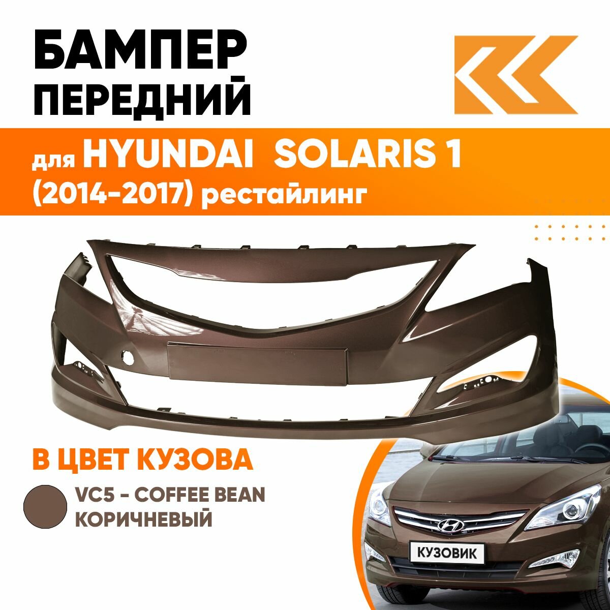 СохранитьБампер передний в цвет кузова для Хендай Солярис 1 Hyundai Solaris 1 (2014-2017) рестайлинг VC5 - Коричневый интересное:
