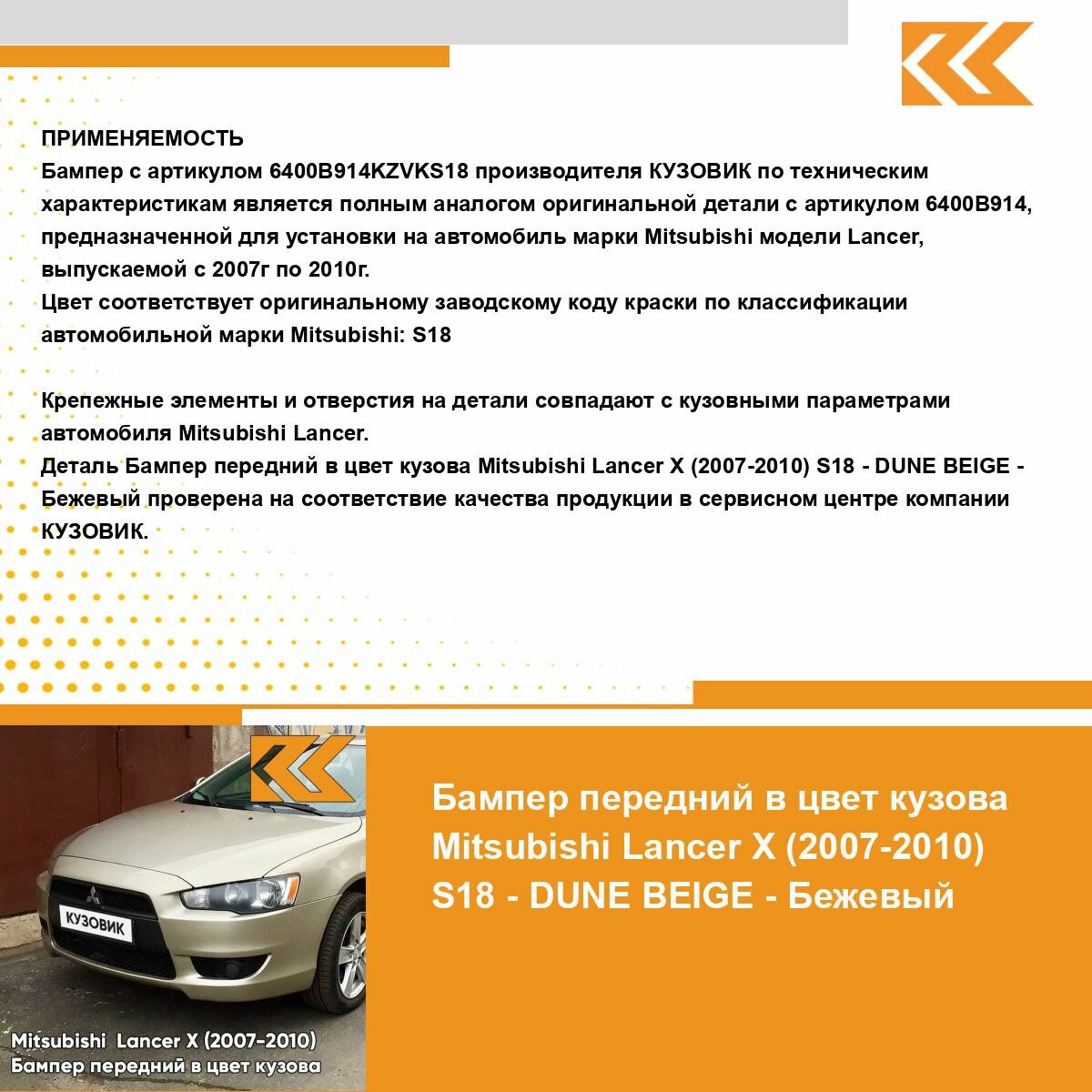 Бампер передний в цвет Mitsubishi Lancer Х (2007-2010) S18 - DUNE BEIGE - Бежевый