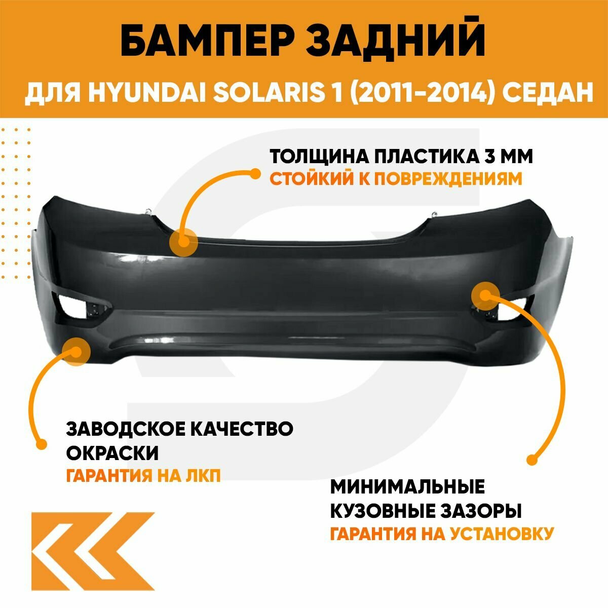 Купить Бампер задний в цвет кузова для Хендай Солярис 1 Hyundai Solaris 1 (2011-2014) седан MZH - PHANTOM BLACK - Черный