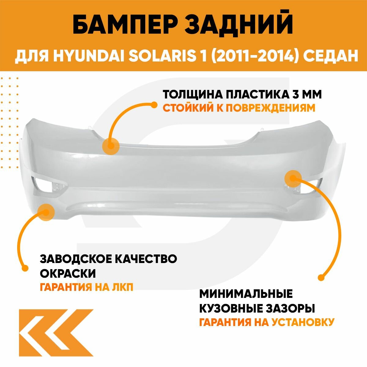 Купить Бампер задний в цвет кузова для Хендай Солярис 1 Hyundai Solaris 1 (2011-2014) седан PGU - WHITE CRYSTAL - Белый