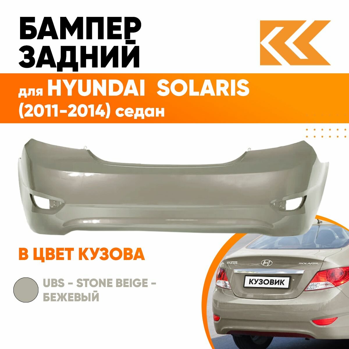 Купить Бампер задний в цвет кузова для Хендай Солярис 1 Hyundai Solaris 1 (2011-2014) седан UBS - STONE BEIGE - Бежевый металлик