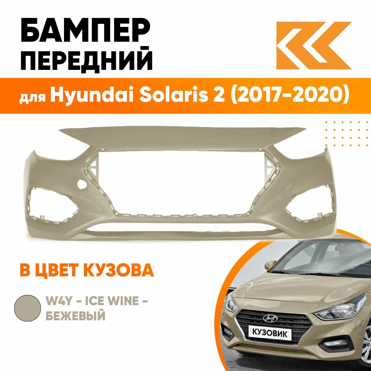 Купить Бампер передний в цвет кузова для Хендай Солярис 2 Hyundai Solaris 2 (2017-2020) W4Y - Ice Wine - Бежевый