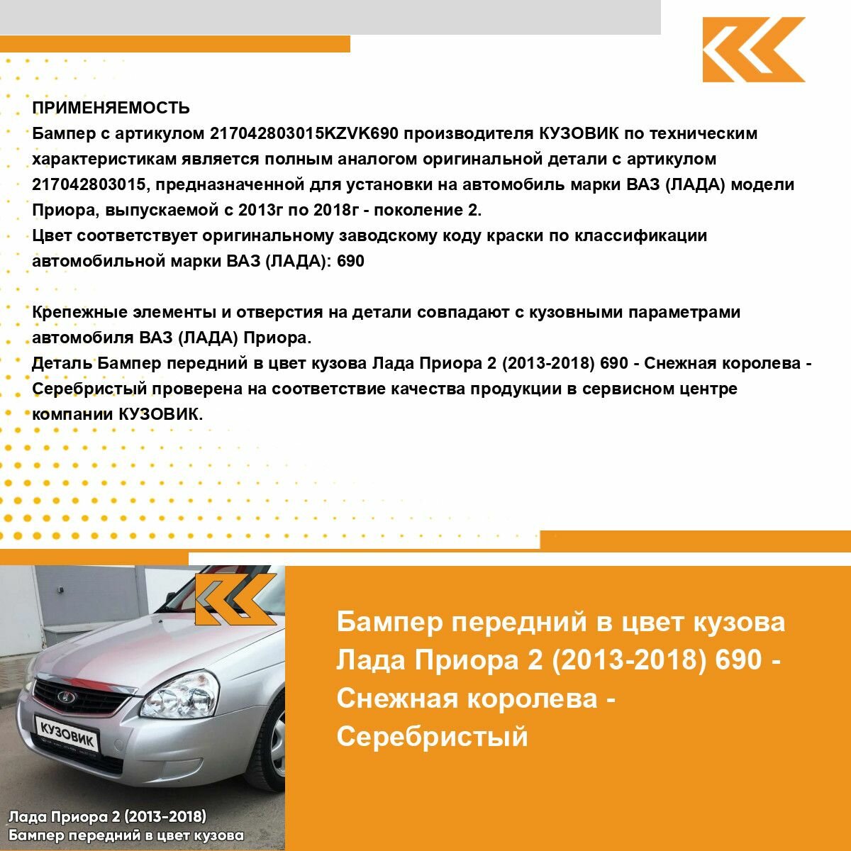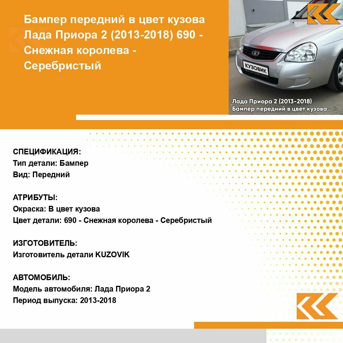 | Подробная комплектация | Бампер передний в цвет кузова для Лада Приора |