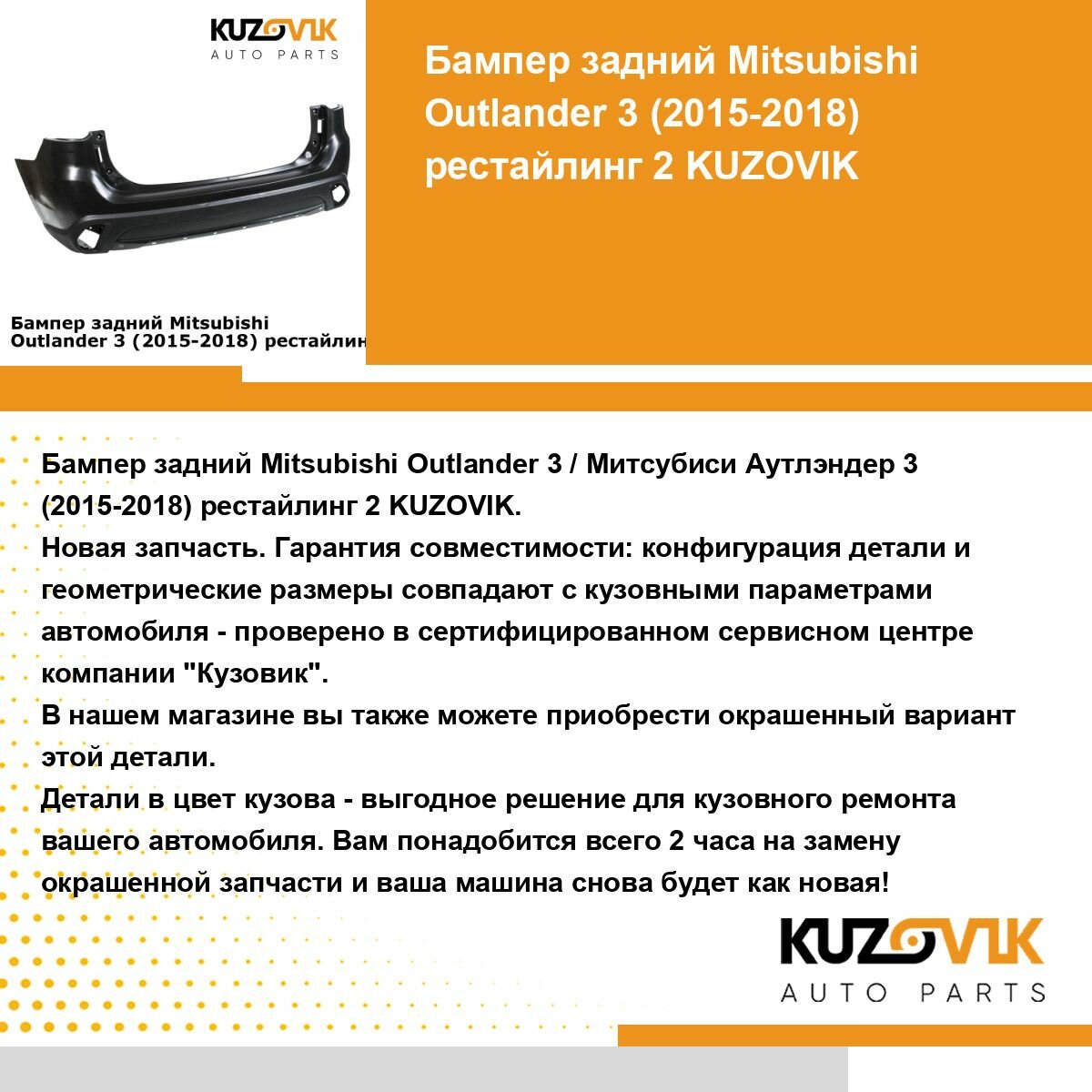 Бампер задний для Митсубиси Аутлендер Mitsubishi Outlander 3 (2015-2018) 1-ый рестайлинг интересное: