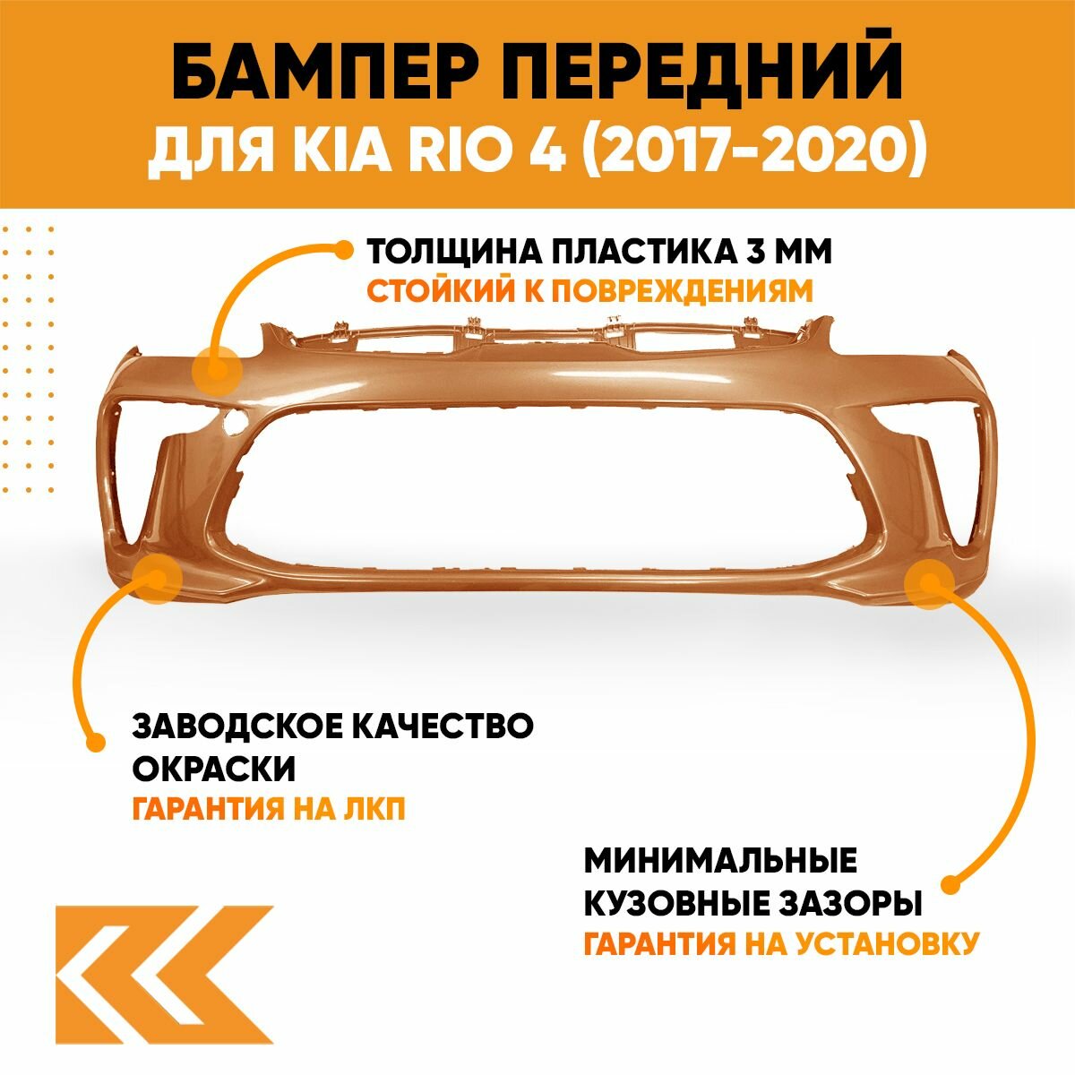| Подробная комплектация | Бампер передний в цвет кузова Киа Рио 4 без решеток |