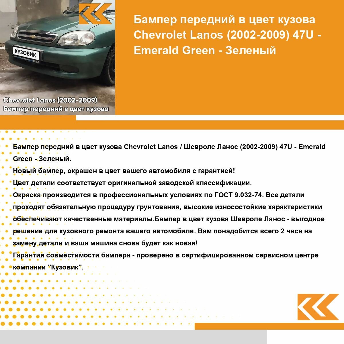 Купить Бампер передний в цвет кузова Шевроле Ланос Chevrolet Lanos (2002-2009) 47U - EMERALD GREEN - Зеленый