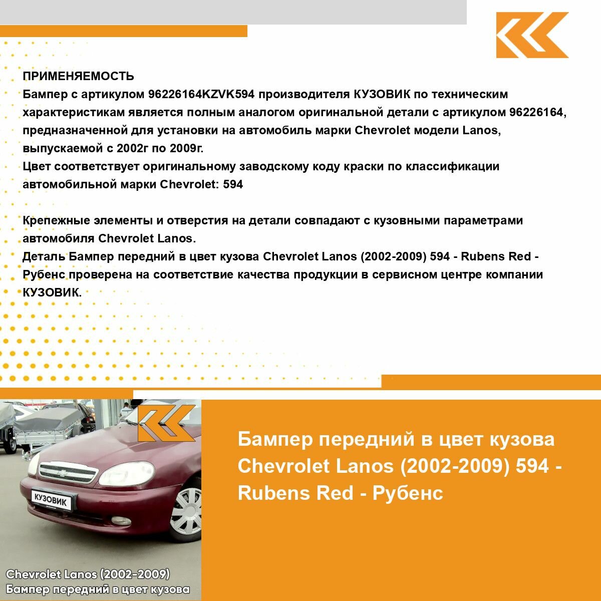 | Подробная комплектация | Бампер передний в цвет кузова Chevrolet Lanos |