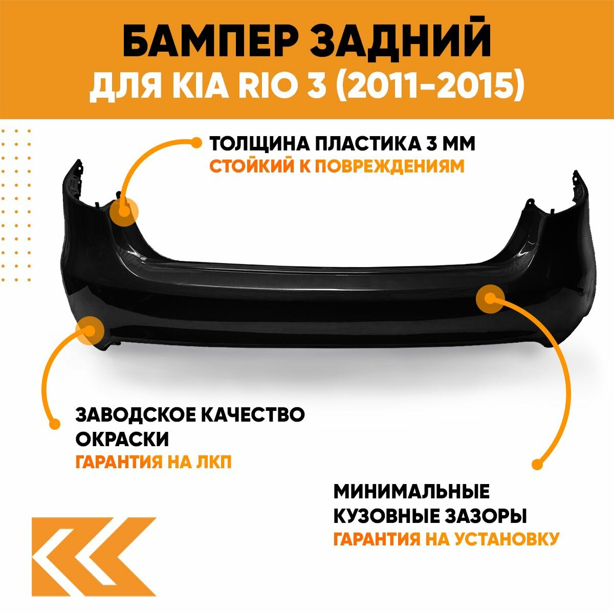 Бампер задний в цвет Kia Rio 3 (2011-2015) MZH - PHANTOM BLACK - Чёрный