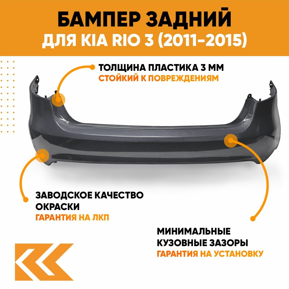| Подробная комплектация | Бампер задний в цвет кузова для Киа Рио 3 |