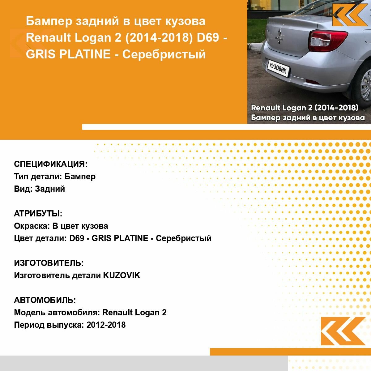 Бампер задний в цвет Renault Logan 2 (2014-2018) D69 - GRIS PLATINE - Серебристый