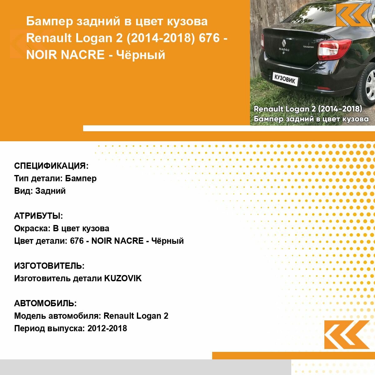 СохранитьБампер задний в цвет кузова для Рено Логан 2 Renault Logan 2 (2014-) 676 - NOIR NACRE - Черный интересное: