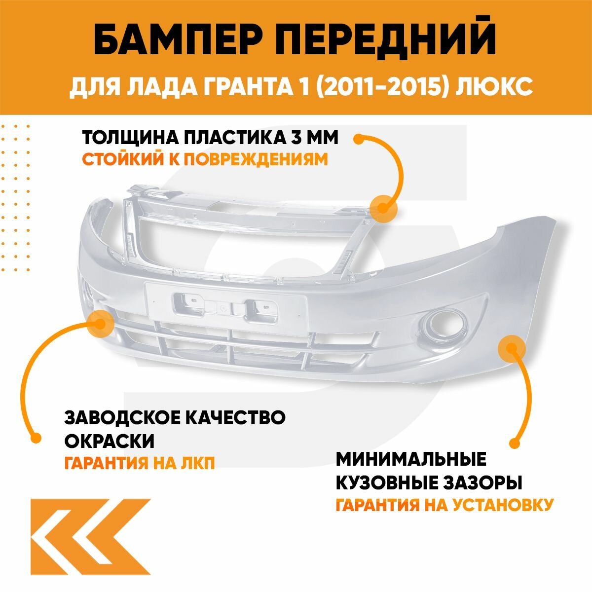 Бампер передний в цвет кузова для Лада Гранта 1 2190 (2011-2015) люкс 611 - алмазное серебро - Серебристый