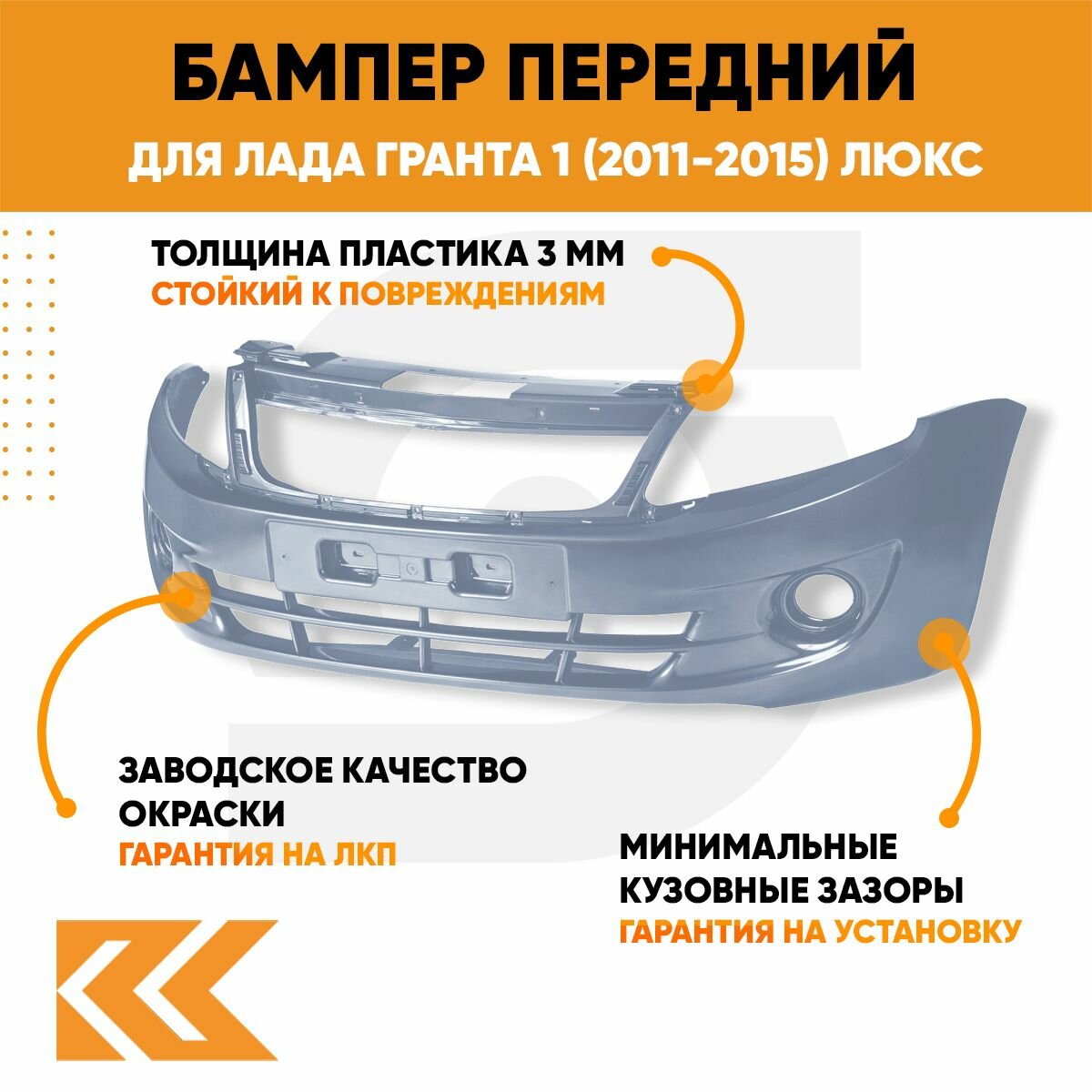 Бампер передний в цвет Лада Гранта 1 (2011-2015) люкс 607 - серое олово - Серый