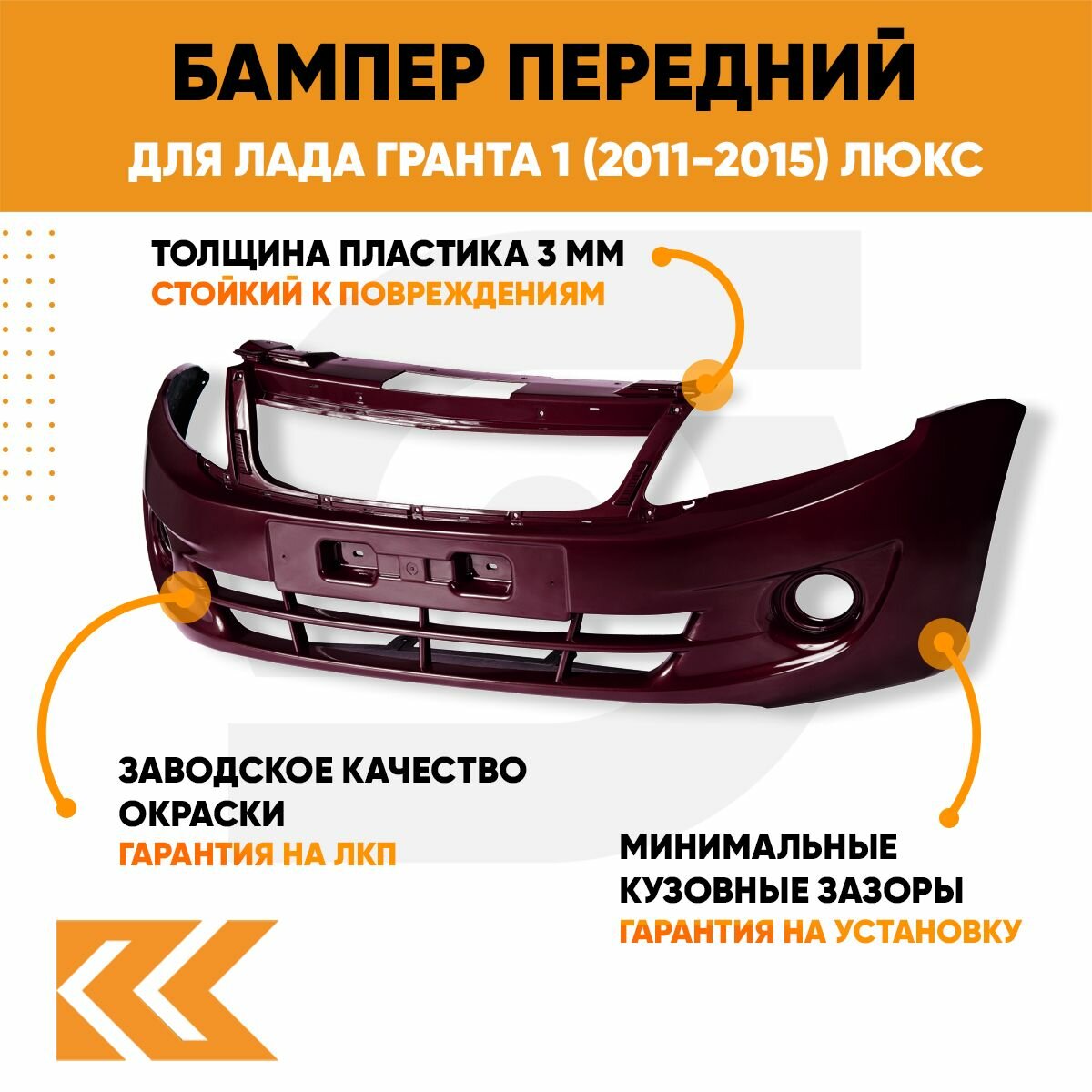 Бампер передний в цвет Лада Гранта 1 (2011-2015) люкс 162 - черешня - Бордовый