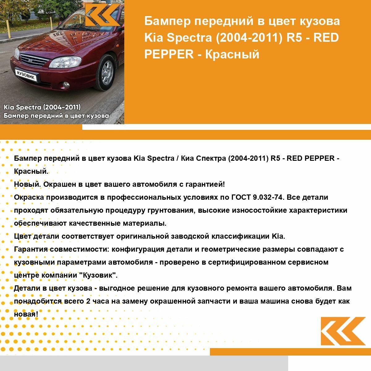 СохранитьБампер передний в цвет кузова Киа Спектра Kia Spectra (2004-2011) R5 - RED PEPPER - Красный интересное: