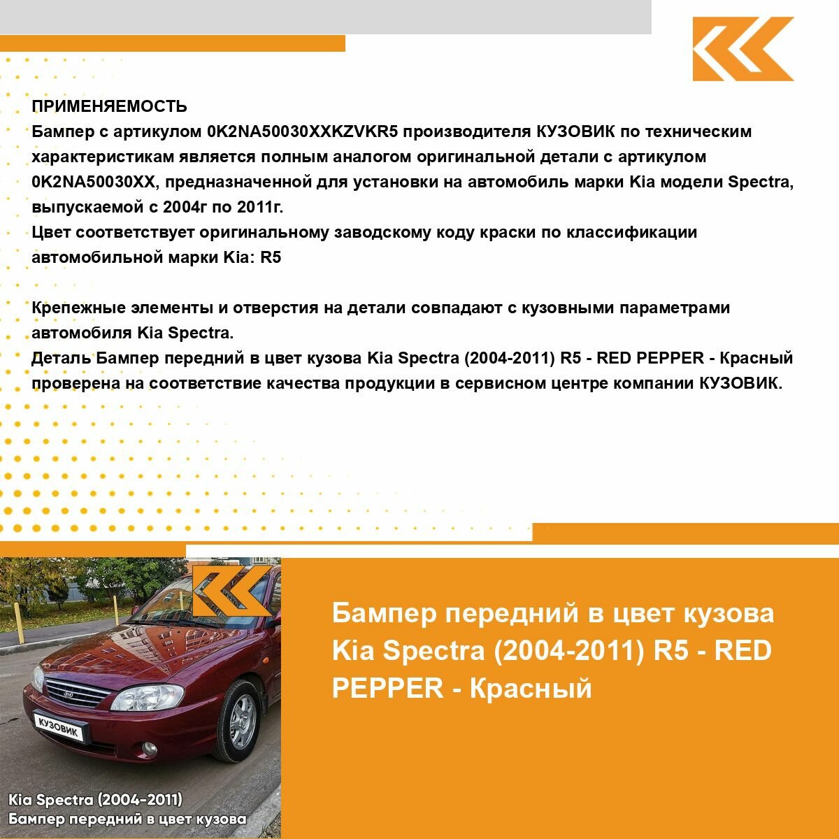 Ниже Вы можете прочитать отзывы на Бампер передний в цвет кузова Киа Спектра Kia Spectra (2004-2011) R5 - RED PEPPER - Красный, ознакомится с подробными характеристиками, посмотреть интересные обзоры и фотографии на Бампер передний в цвет кузова Киа Спектра Kia Spectra (2004-2011) R5 - RED PEPPER - Красный.